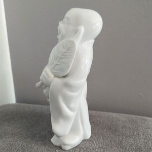 Traveling Buddha Figurine Statue Leaf Staff White Spiritual 6" Ceramic
