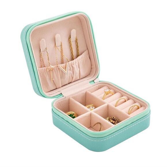 【Portable】Multi-functional Travel Jewelry Box can be put into handbag easily and small lightweight when going out for Travel or Business.Dimension 3.94 x 3.94 x 1.97 inches,4.23 oz.