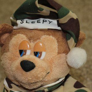 Travelodge Hotel US Army Sleepy Teddy Bear Plush Stuffed Animal Camo Toy 13" HTF