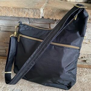 Travelon Anti Theft Signature 3 Compartment Crossbody Large Black Handbag Purse