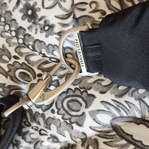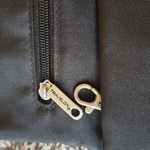 Included for free: NWT. Travelon Zip Around Wristlet Wallet in black. Zip around design. Interior is a mustard yellow and features two storage compartments, one zippered compartment and ten card slots. RFID. Removable wristlet strap. Measures approximately 7.5 inches long and 4 inches high.