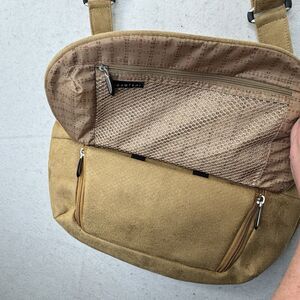 Travelon Anti-Theft Travel Purse 17397 Tan Ultrasuede Hobo Handbag Zip Pockets