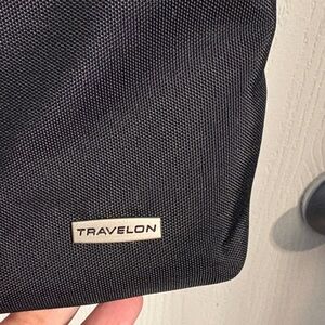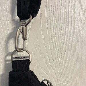 Like new used once. Stylish black crossbody with adjustable strap. Features multiple secure pockets. Perfect for travel and everyday use. 31 in length from shoulder strap but can be adjusted. Actual bag is 11in by 11 in with multiple storage pockets