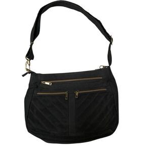 Travelon Black Quilted Nylon Large Crossbody Bag Travel Purse Brass Hardware