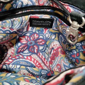 Travelon Exclusive Edition RFID Paisley Lining Black Quilted Crossbody Bag