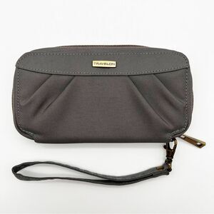 Travelon Gray RFID Zip Around Fabric Travel Clutch Card Holder Wristlet Wallet