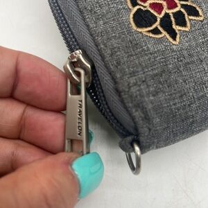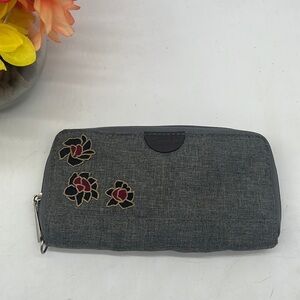 Travelon Heather Gray wallet with embroidered flowers standard size