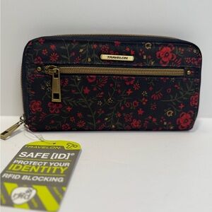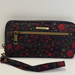 Travelon Ladies Zip Security Card Holder NWT navy floral