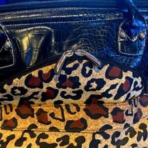 Travelon Manhattan Carpet Tote Bag Crocodile Faux Leather Leopard Animal Print Zip Closure