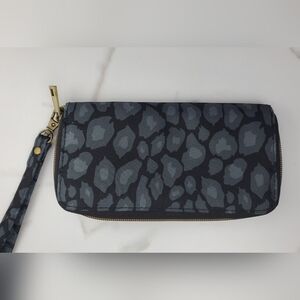 Travelon RFID Blocking Grey Animal Print Continental Wallet Wristlet