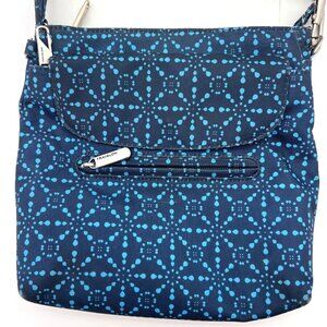The Travelon RFID Shielded Crossbody Bag offers a balance of style and security. Designed with a protective RFID pocket, it helps safeguard personal information. Its adjustable strap provides comfortable wear, while the durable polyester material ensures long-lasting use. The bag's attractive pattern makes it a fashionable choice for everyday use.