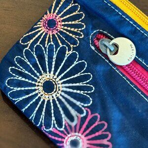 Travelon Safe ID Daisy Double Zip Clutch Wallet In Navy Travel Lightweight VGUC