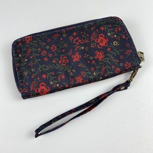 Travelon Wallet Wristlet Safe ID RFID Women's Zip Clutch Floral Navy Classic