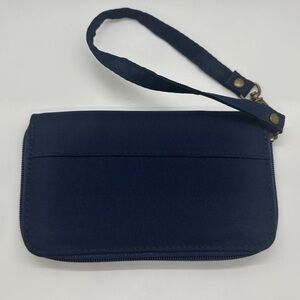 Travelon Zip Around Navy Blue Wallet Wristlet 4x6.5” Coin Section on Outside EUC