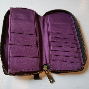 Travelon Zipper Wristlet Wallet Black with Purple Lining