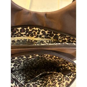 Travelon criss cross RDIF brown with animal print lined 10x12”multi compartment