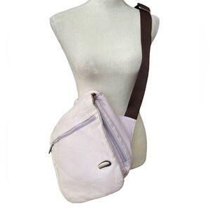 Travelon lilac canvas crossbody messenger bag w/ organizer pockets & adjustable strap