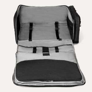 This backpack/duffel has been sizer bin tested to accommodate overhead bin space on most major US airlines.