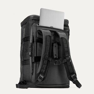 Protect and organize your stuff with a padded sleeve for a laptop or tablet, multiple compartments, a handy key leash, and hold-down straps