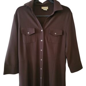 Travelsmith Chocolate Brown Maxi Shirt Dress Size Medium
