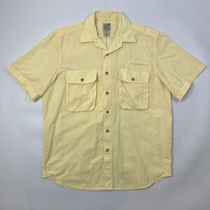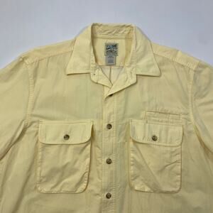 TRAVELSMITH SHIRT MENS LARGE PASTEL YELLOW SHORT SLEEVE VENTED COTTON BLEND FISH