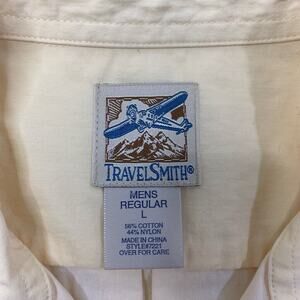 Travelsmith Shirt Mens Large Pastel Yellow Short Sleeve Vented Cotton Blend Fish