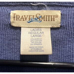 Travelsmith Women's Blue Long Sweater 2 Buttons L Cotton Loose Flowy Comfort