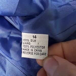 Keywords: Travis Ayers, silk blazer, purple blazer, rhinestone button, size 14, career jacket, formal blazer, vintage blazer, long sleeve blazer, periwinkle jacket, women's blazer, classic style, business casual, elegant jacket