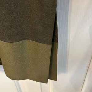 Travis Ayers Women’s 18W Green NWT Fully Lined Career Pencil Knee Length Skirt. Button and Zipper Closure on the back. Side Slit. Two tone Green color. Elastic on waist on both sides on back.