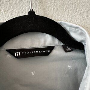Travis Mathew Across The Pond Short Sleeve Button Up Golf Shirt SMALL Blue
