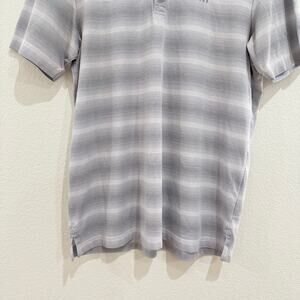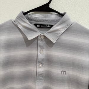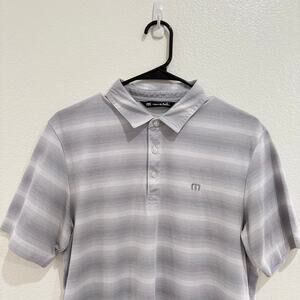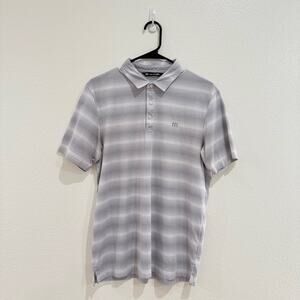 Travis Mathew Beach Camping Stripe Piqué Polo Grey White Short Sleeve Size Medium