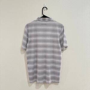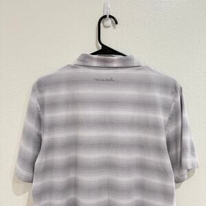 Travis Mathew Beach Camping Stripe Piqué Polo Grey White Short Sleeve Medium