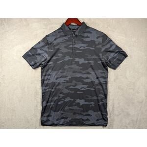 Travis Mathew Beachside Stealth Polo Shirt Medium Black Camo Palm Trees Golf *