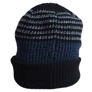 Travis Mathew Beanie. Black with Blue and White Accents. Sweater Weaved. Fold Over. “At the Cape.” 100% Acrylic. Men’s One Size Fits Most. New with Tags.