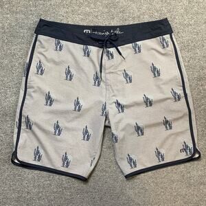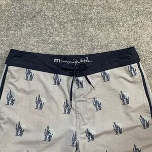 Travis Mathew Board Shorts Mens 38 Grey Navy Sand In My Beer Cactus Surfing Swim