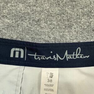 TRAVIS MATHEW BOARD SHORTS MENS 38 GREY NAVY SAND IN MY BEER CACTUS SURFING SWIM