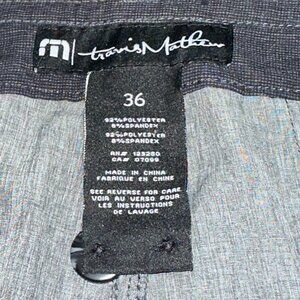 Travis Mathew Charcoal Grey Black Dot Golf Performance Chino Shorts Size 36. These shorts are made of 92% Polyester 8% Spandex. They measure Waist (lying flat) 19", Rise 12", Inseam 10". These shorts are charcoal grey with black dots. They feature a zipper/button closure. They are in good, used condition. Ships from a Smoke Free Home. Any questions, please ask. All reasonable offers welcome.