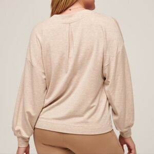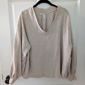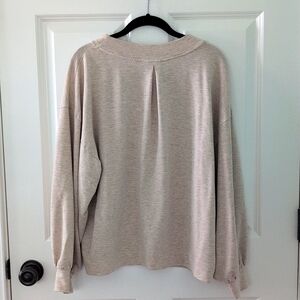 Travis Mathew Cloud Terry V Neck Pullover. Size Large. In a heathered natural color. Purchased at Turtle Bay in Hawaii so has a small turtle embroidered lower left side. Lightweight and comfy. EUC.
