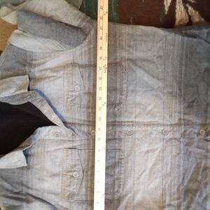 Stay stylish and warm with this men's gray plaid jacket. Perfect for any casual outing...it's in good condition minus some wash wear. has pockets. measurements are in the listing..size large see measurements as I believe it fits more like Medium depending on your statue