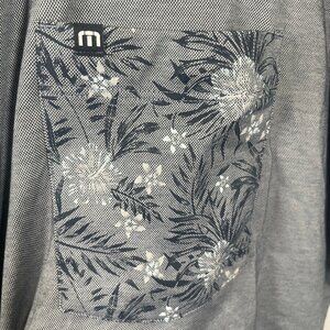 Travis Mathew Floral Pocket Polo Shirt Mens XXL Golf SS Gray Blue No Maps Hawaii