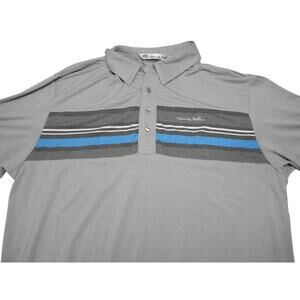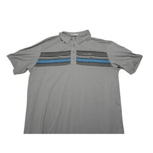 Travis Mathew Golf Polo Gray Stripe Blue Logo Size Large Performance Athleisure