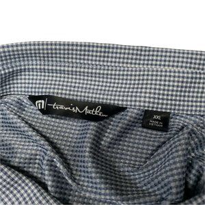 Travis Mathew Golf Polo Shirt Men's XXL Blue Gingham Performance Short Sleeve