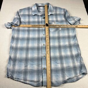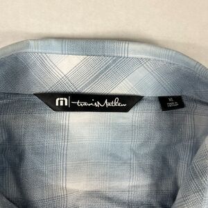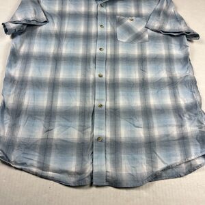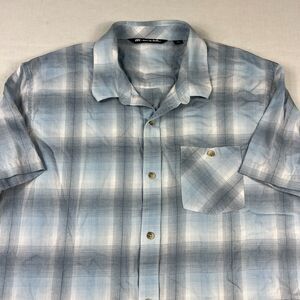 Travis Mathew Gradient Blue Ombre Plaid Button Down Shirt XL Casual Short Sleeve