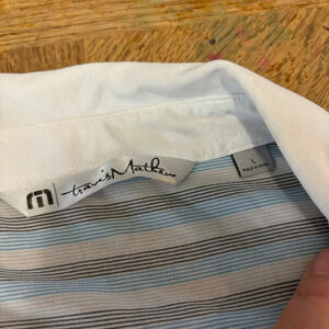 Travis Mathew Gray & Blue Stripe Short Sleeve Stretch Golf Polo Large Men See pictures for reference and measurements