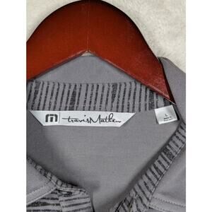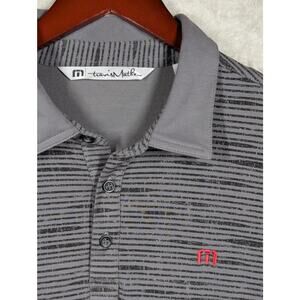 Travis Mathew Gray Embroidered Striped Golf Polo Short Sleeve Shirt Size Large