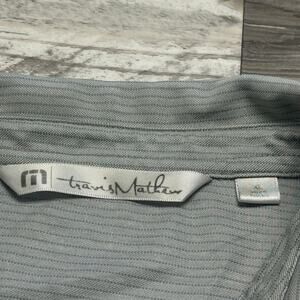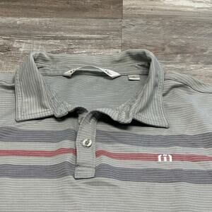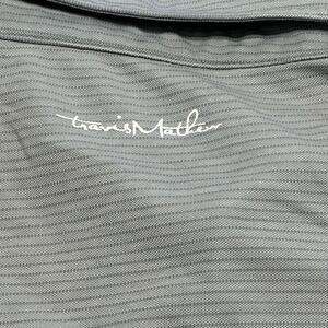 Travis Mathew Gray Mens XL Brand Spellout Stripe Streetwear Polo Shirt