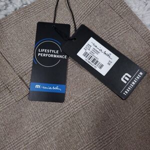 Men's Travis Mathew Grommet 9" stripe khaki, tan, or light brown golf shorts. Style number 1mw830. New with tags. Men's size 38, real measurements shown in photos with shorts laid flat: