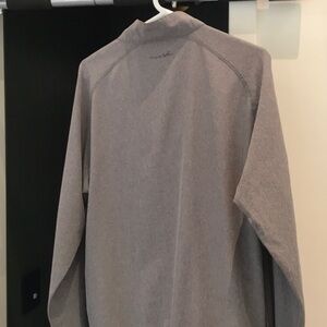 Stylish heather gray pullover with a quarter-zip design. Features subtle branding on the zipper.