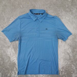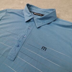 Elevate your golf game with this classic and sporty Travis Mathew polo shirt. Made with a comfortable blend of polyester and Pima cotton, this light blue shirt features a chest stripe and a spread collar, perfect for casual and activewear occasions. The shirt is machine washable and has short sleeves, making it suitable for summer, fall, and spring seasons. This polo shirt is designed for men and comes in size medium, with a shirt length of 28 inches and a chest size of 40 inches. It has button closures and embroidered accents with the Travis Mathew logo. This shirt is perfect for golf enthusiasts, with its performance-enhancing fabric wash and knit fabric type. Made in Peru, this shirt is a must-have for any sports-themed wardrobe.