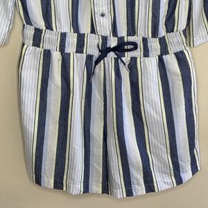 Travis Mathew | Lucky Loo Twill Tie Waist Romper Size Medium Navy Yellow Stripe